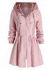 Plus Size Hooded Checked Drawstring A Line Tunic Coat