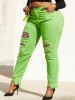 Neon Colored Distressed Leopard Panel Plus Size Skinny Jeans