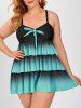 Plus Size Layered Ombre Criss Cross Skirted Tankini Swimwear