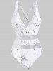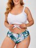Tie Hem Ruched Leaves Print Plus Size Bikini Swimwear