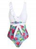 Floral Fruit Print Ruffle Waist Tie One piece Swimsuit