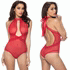 Collared Mesh Teddy with Elastic Detail, Red, One Size, Oh La La Cheri Lingerie