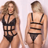 Collared Mesh Teddy with Elastic Detail, Black, One Size, Oh La La Cheri Lingerie