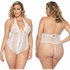 Crotchless Lace Teddy with Rhinestone Detail, White, Queen Size, Oh La La Cheri Lingerie