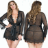 Provence Eyelash Lace Robe with G-String, Black, 3X/4X, Oh La La Cheri Lingerie