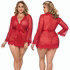 Provence Eyelash Lace Robe with G-String, Red, 3X/4X, Oh La La Cheri Lingerie