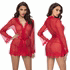Provence Eyelash Lace Robe with G-String, Red, L/XL, Oh La La Cheri Lingerie