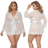 Provence Eyelash Lace Robe with G-String, White, 3X/4X, Oh La La Cheri Lingerie