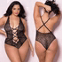 Soft Lace Teddy with Front Lace Up Detail, Black, One Size, Oh La La Cheri Lingerie