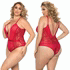 Viviane V-Plunge Lace Teddy with Strap Detail, Red, 1X, Oh La La Cheri Lingerie
