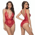 Viviane V-Plunge Lace Teddy with Strap Detail, Red, Small, Oh La La Cheri Lingerie