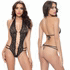 Lace Crotchless Teddy with Rhinestone, Black, One Size, Oh La La Cheri Lingerie