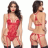 Eyelash Open Back Lace Teddy with Garters, Red, S/M, Oh La La Cheri Lingerie